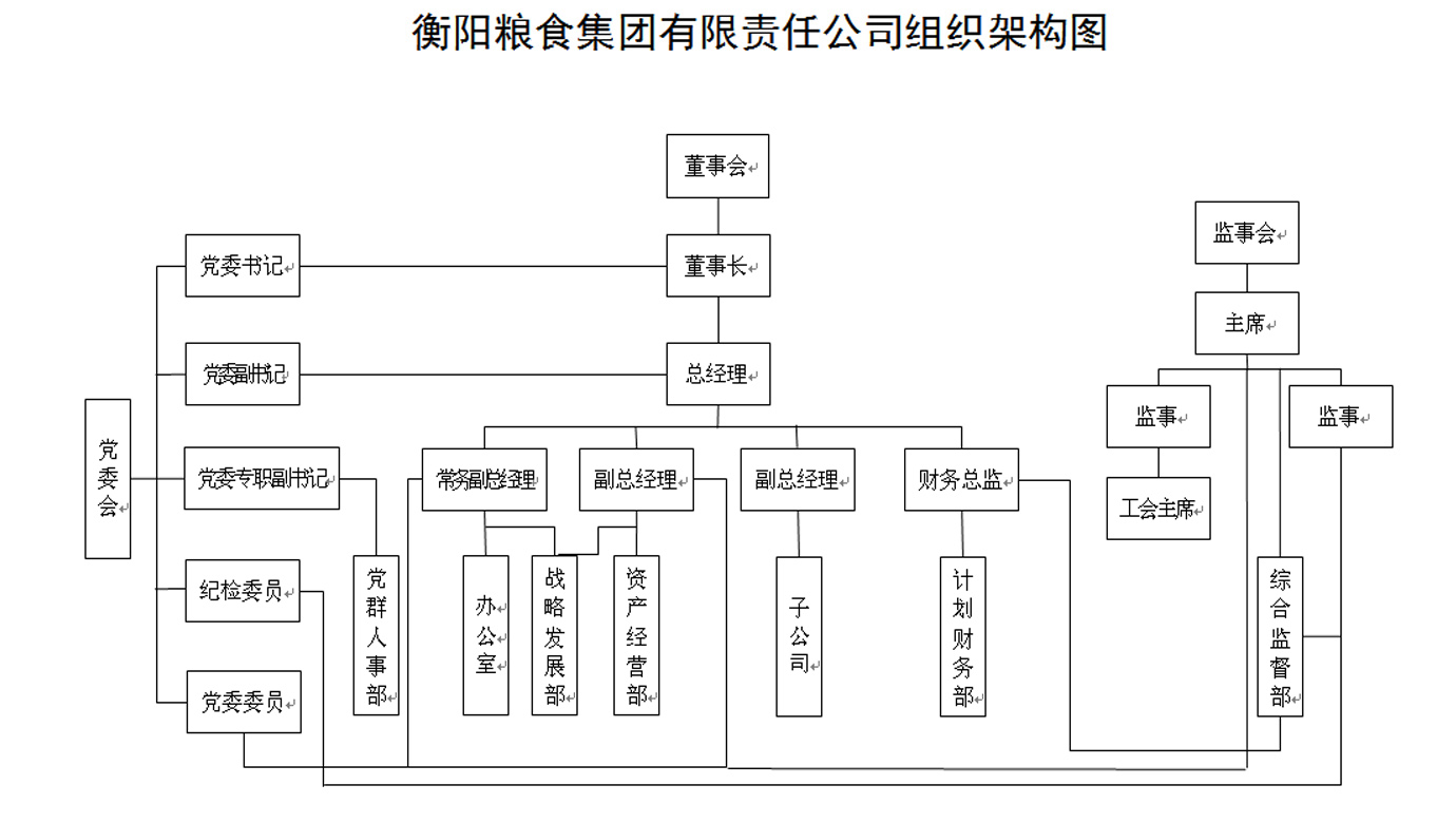 衡陽糧食集團是經衡陽市人民政府批準,市國資委履行國有出資人職責,整合原湖南衡陽三塘國家糧食儲備庫、衡陽茅坪湖南省糧食儲備庫、衡陽四方糧油儲備中心、衡陽油脂儲備庫、衡陽市大自然生物實業有限公司、衡陽市穗豐大廈六家企業于2020年8月19日正式成立,是我市唯一一家國有獨資綜合性糧食企業,也是我省“地市級”第一家國字號糧食集團公司。